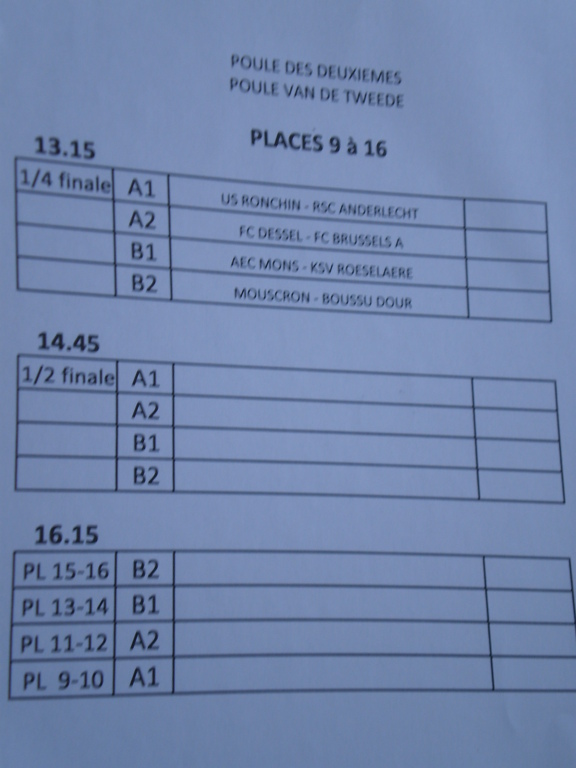Nos U9 ont passé une agréable journée en jouant contre de grandes équipes belges. Ils ont terminé 16ème sur 24. Bravo à tous les joueurs. Ils sont revenus avec une coupe et une médaille chacun et garderont un très bon souvenir de cette journée. François