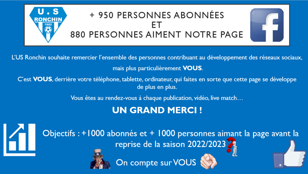 L'US Ronchin souhaite vous remercier pour l'engouement présent depuis ce début de saison sur nos réseaux sociaux.