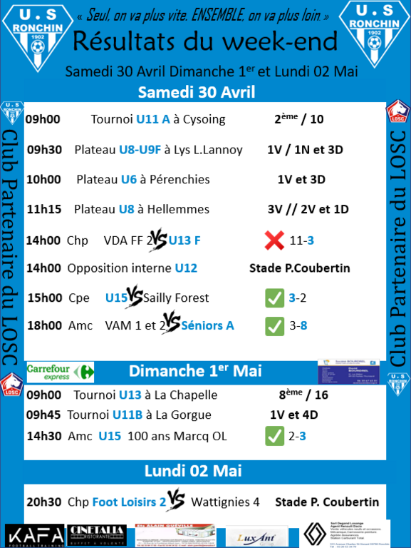 RESULTATS DU WEEK-END![]()