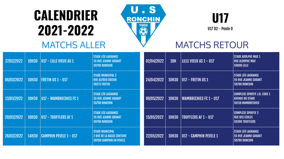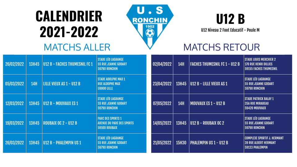 Calendrier des championnats - Phase 2