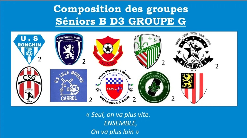 Notre équipe B se retrouve dans le groupe G, un groupe majoritairement composé d'équipes réserves, en effet, nous retrouvons : Verlighem 2, Anst Chereng 2, Lezennes 2, Lille Carrel 2, VDA Flers 2 ainsi que Wazemmes 2.